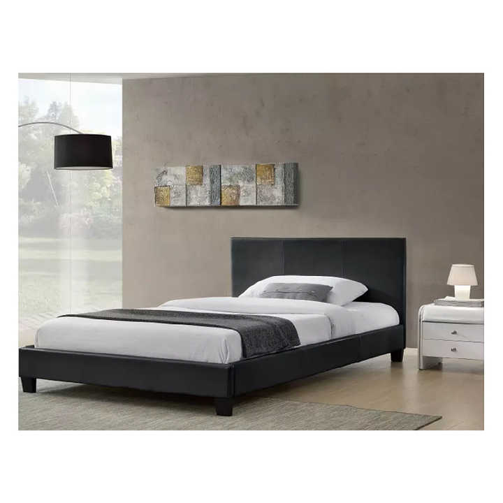 Super Single Bedroom Furniture Upholstered Headboard Bed Hotel Double Modern Wooden Platform Leather Bed Frame