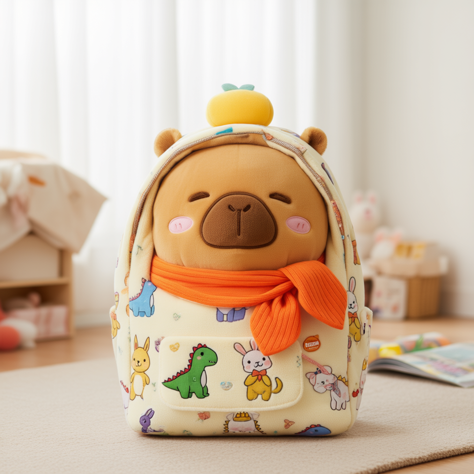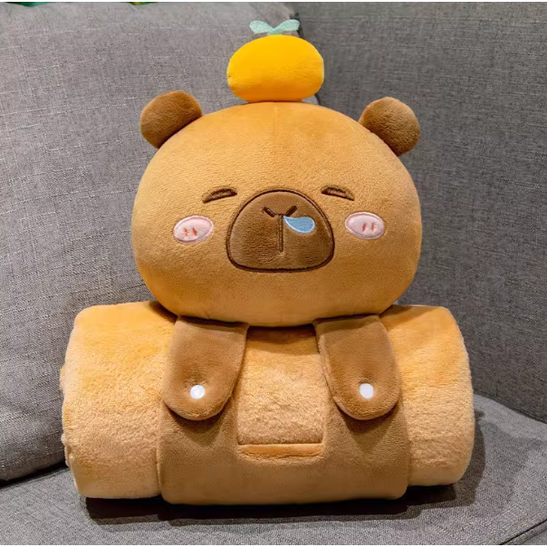 Super Soft Plush Capybara Blanket Orange Scarf for Children Featuring Dinosaur Rabbit Princess Bag Designs PP Cotton Filling