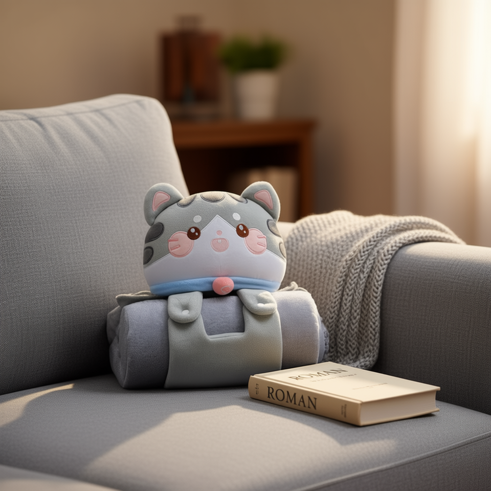 Super Soft Reversible Cat Plushie & Blanket Kawaii Amigurumis Design OEM ODM PP Cotton Filling Comforter Unisex for Anniversary