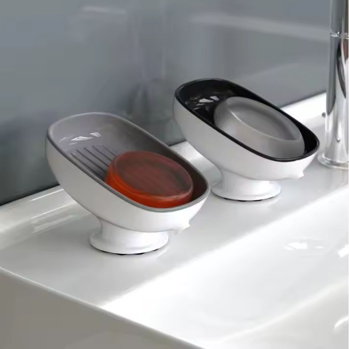 Super Suction Cup Soap Dish with Drain Water for Bathroom Soap Holder Sponge Holder Soap Container Bathroom Supplies