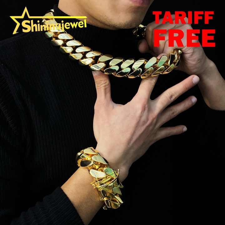 Catena Cubana Semplice Super Spessa Pesante e Massiccia Placcata Oro 18k da 30 mm Collana Bracciale Stile Hip Hop Rock Senza Moissanite