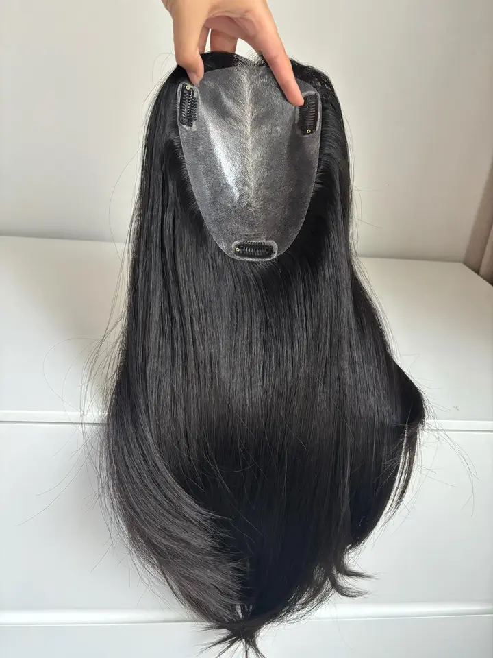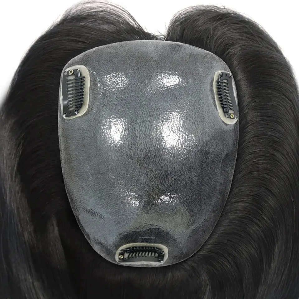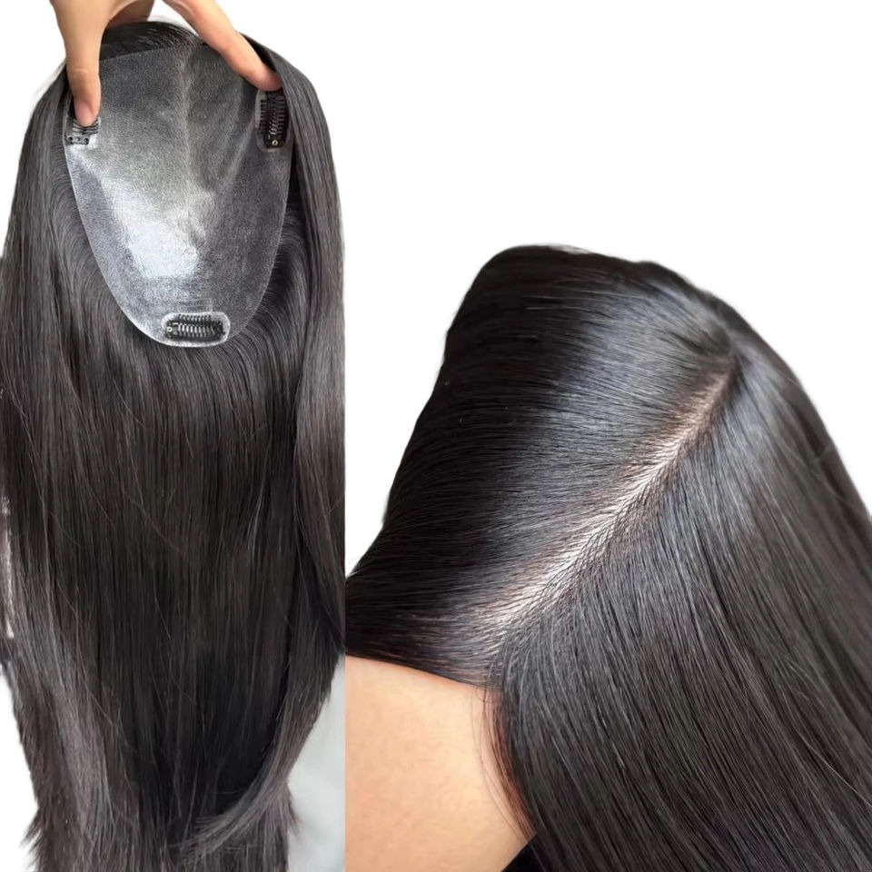 Topper per capelli da donna super sottile da 18 pollici con base in PU iniettato, 13x17 cm, in pelle sottile, capelli europei, durevole, il più realistico per la perdita di capelli