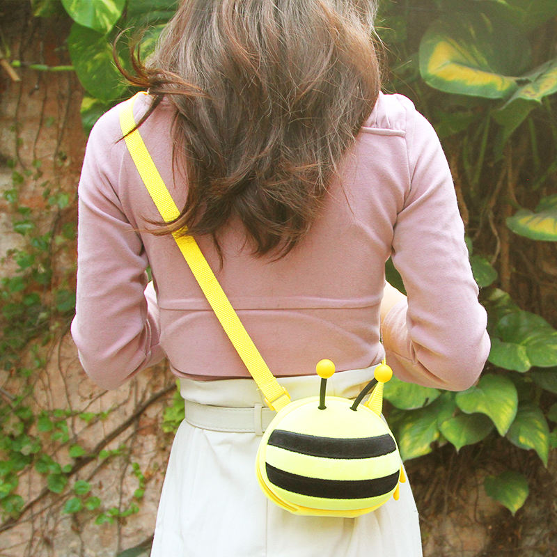 Supercute Plush Bee Crossbody Bag Fashionable Messenger Style Female Handbag Small Zipper Shoulder Bag for Kids or Ladies