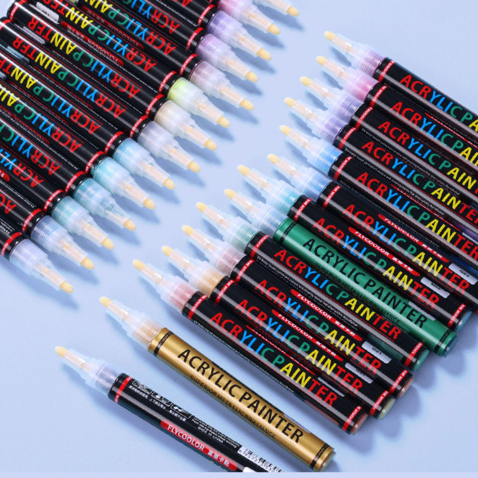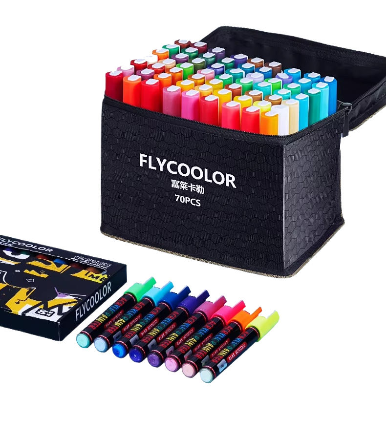Set di Pennarelli Acrilici Flycoolor OEM di Qualità Superiore, 72 Colori: 50 Normali + 8 Glitter + 8 Metallizzati + 6 Dorati per Artisti
