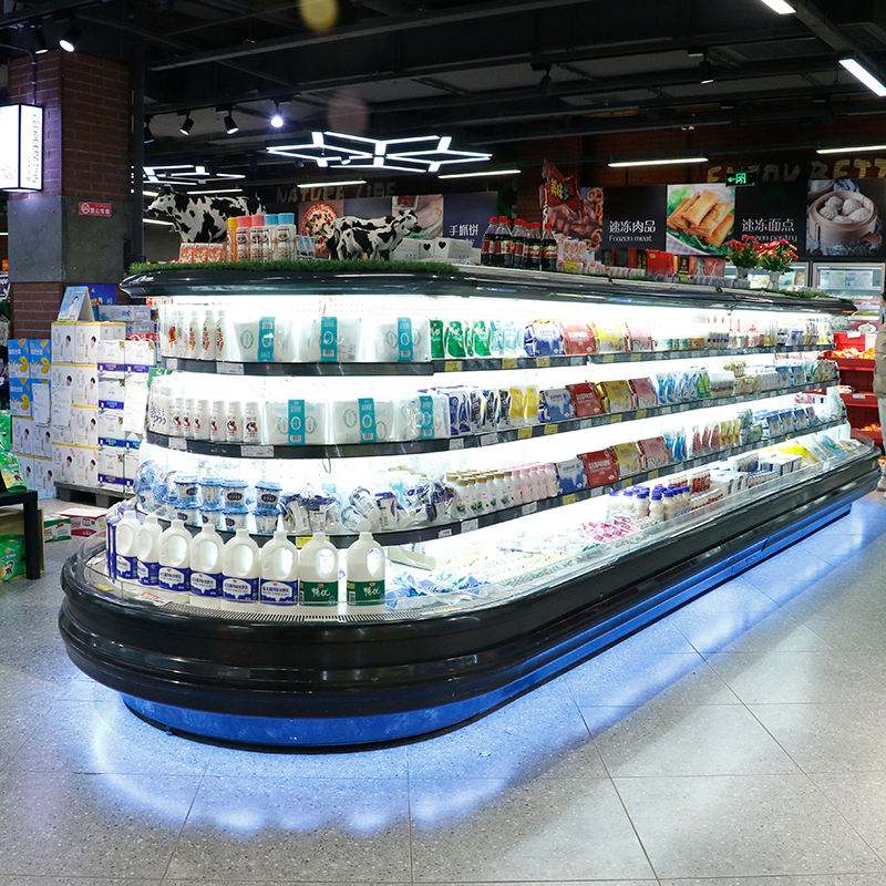 Supermercato Multideck Open Chiller carne frutta verdura tenda aria frigorifero