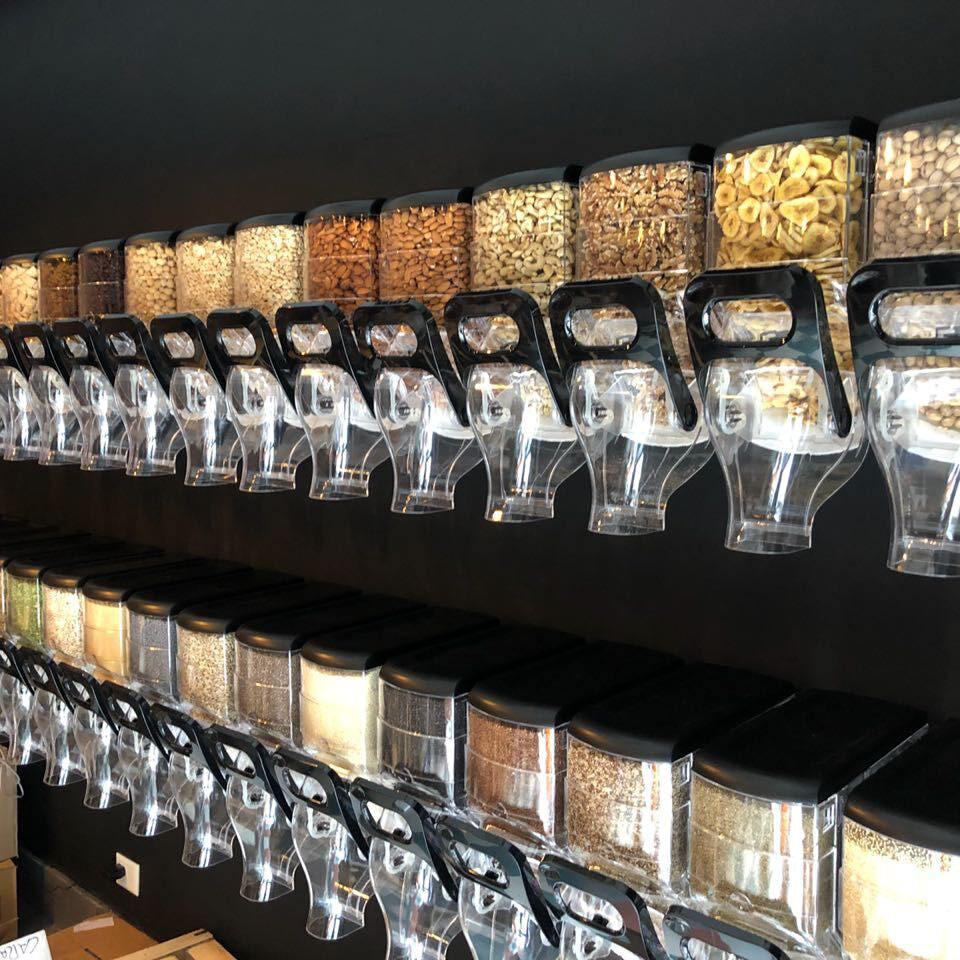 Supermarket Retail Store Pick and Mix Well Mounted Plastic Cereal Nuts Grain Dispensers Bulk Dry Foods Bins