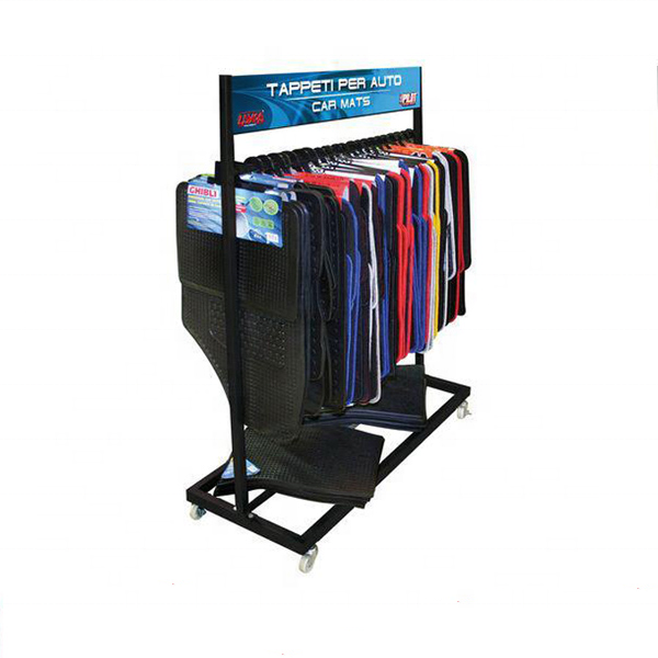 Supermarket Shop Retail Store 4 Wheels Movable Hanging Accessories Cloth Towel Auto Car Mat Metal Rack