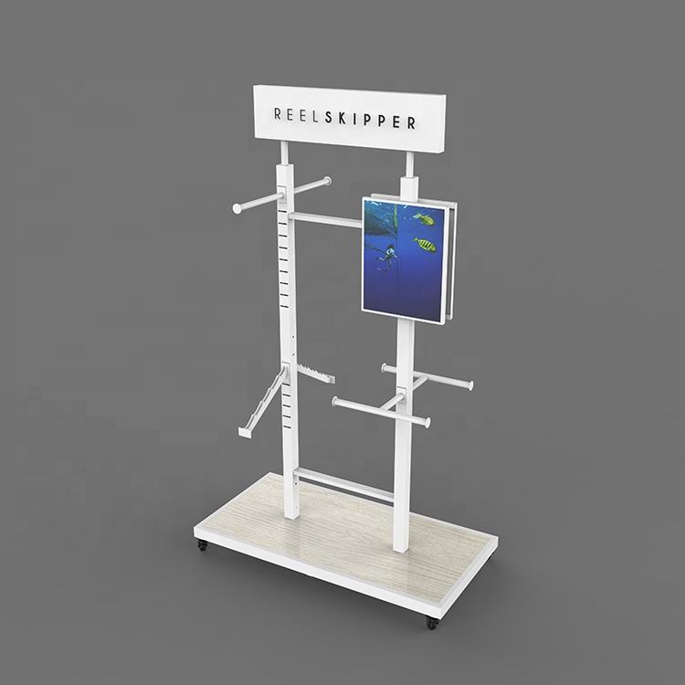 Supermarket Shopping Mall Garment Custom Wood Apparel Display Stand Clothing Display Rack for T-shirt & Cap