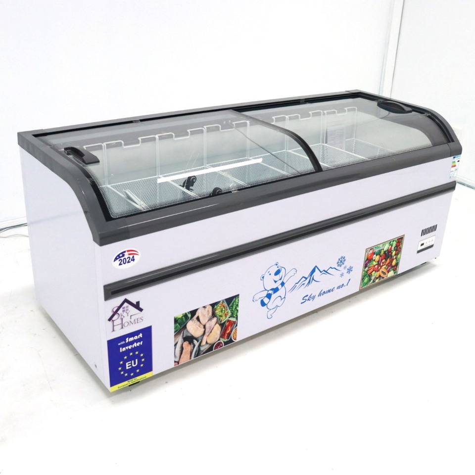 Supermarket Top Open Sliding Lid Fridge Bagged Frozen Food Meat Combined Display Eu Island Freezer
