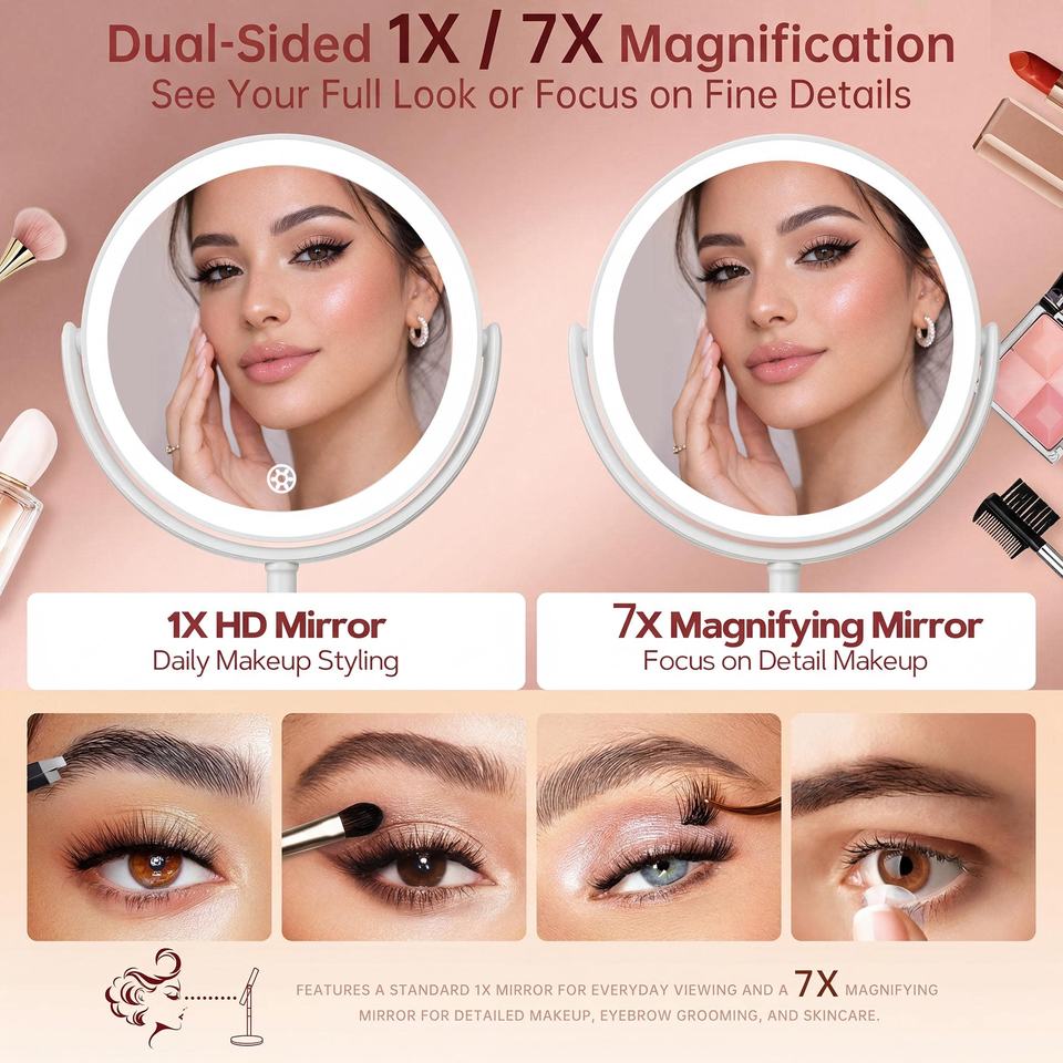 Specchio da Trucco Rotondo con Luce LED a 3 Modalità di Colore, Sensore Touch da Tavolo, OEM ODM