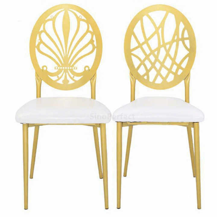 Sedie Tiffany in Metallo Bianco per Cerimonie e Banchetti, Arredamento Moderno per Ricevimenti Nuziali