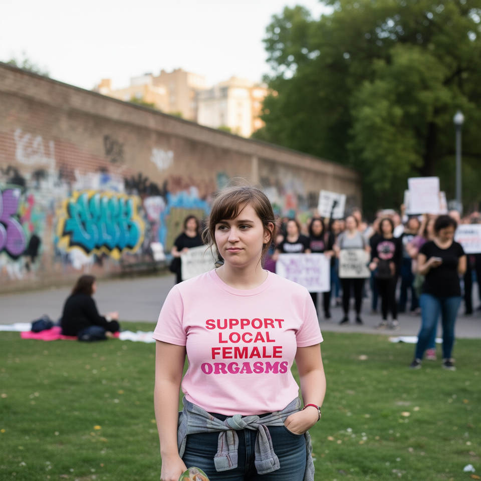 T-shirt Rosa Unisex Girocollo a Maniche Corte per Orgasmi Femminili Locali - Abbigliamento Promozionale per Adulti