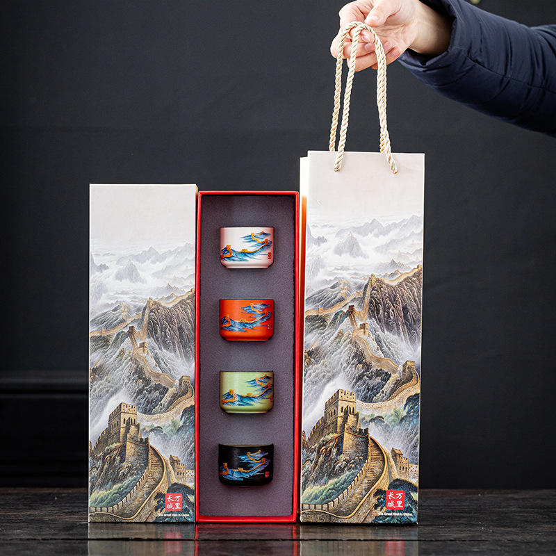 Set da Tè Pomeridiano in Porcellana con Scatola Regalo di Lusso Personalizzabile, Tazza da Caffè in Ceramica con Motivo Paesaggistico