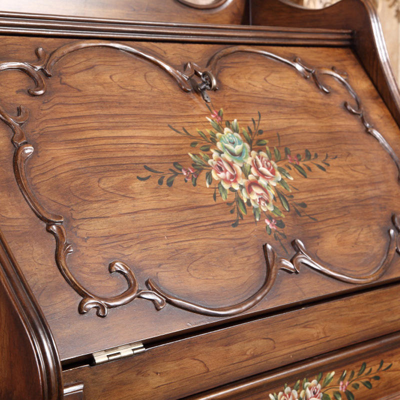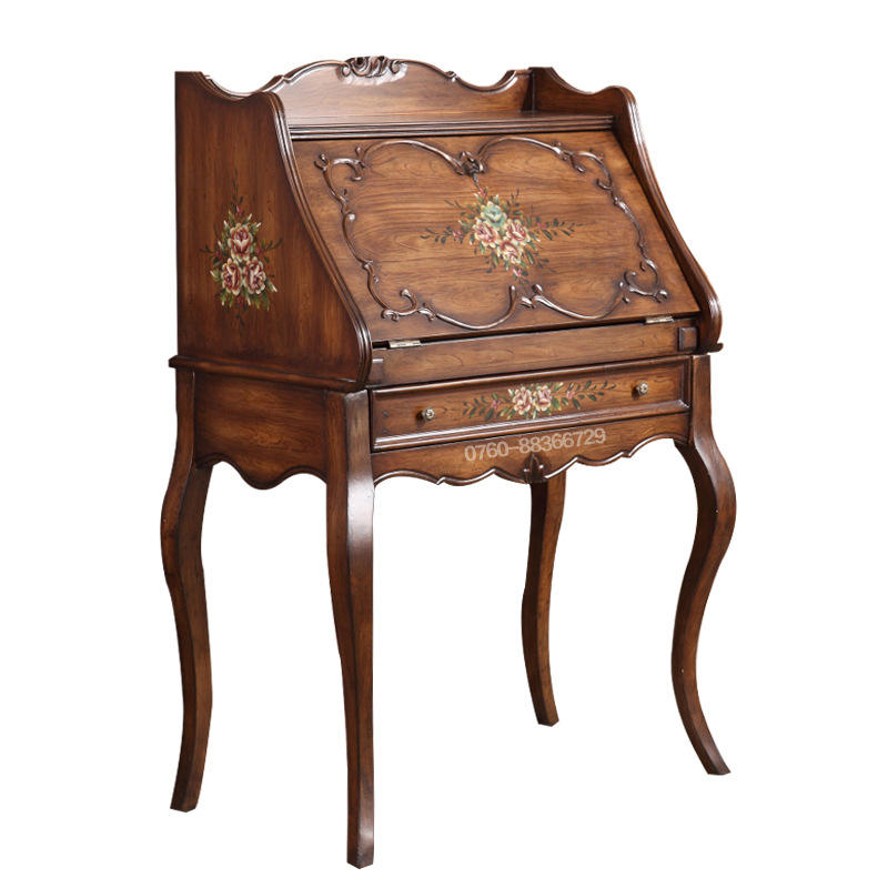Scrivania Multifunzionale Stile Country Americano Vintage in Legno Dipinto con Coperchio Ribaltabile per Uso Commerciale