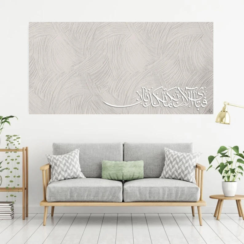 Calligrafia della Sura Rahman, Arte Islamica Moderna, Stampa su Tela, Decorazione Artistica Testurizzata Fatta a Mano per Soggiorno e Camera da Letto