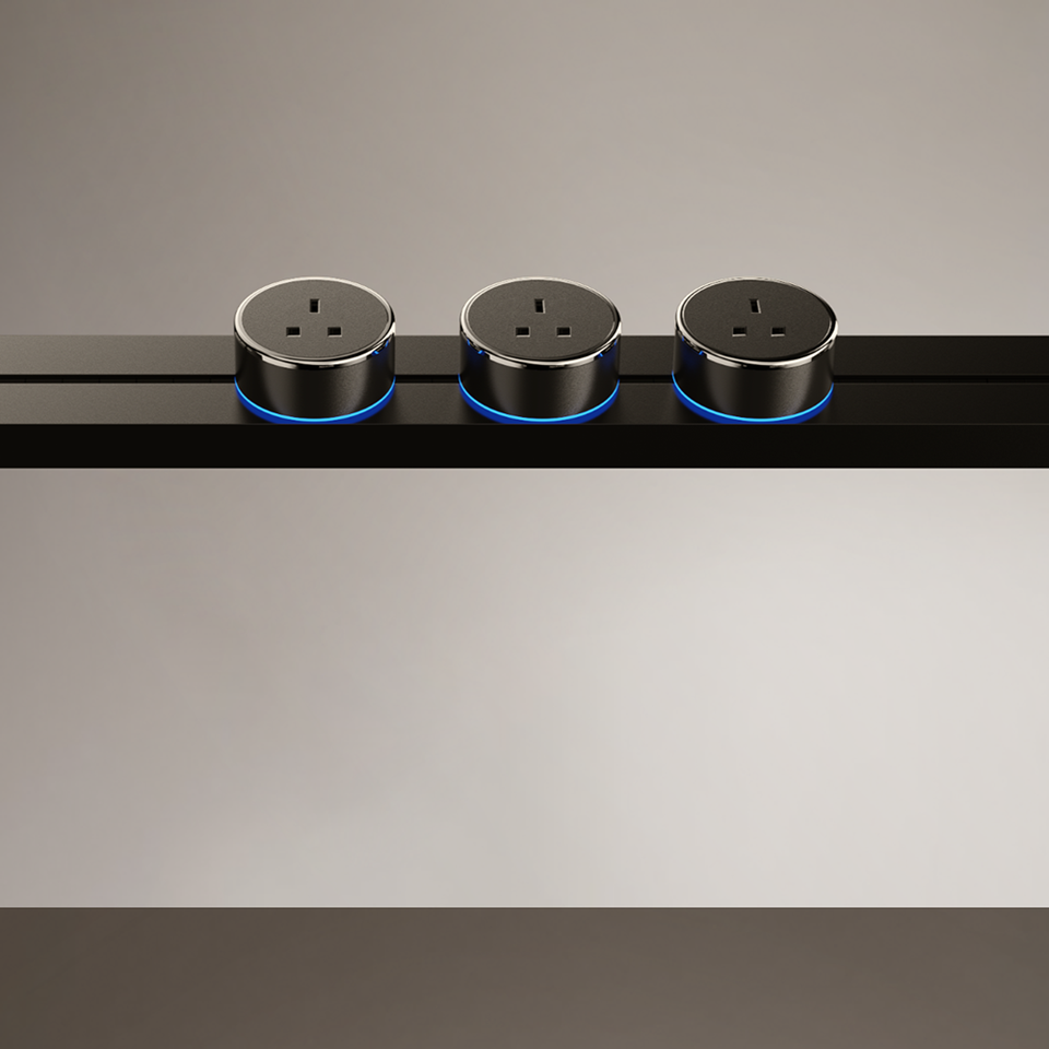 Sistema di prese a binario per ufficio a montaggio superficiale, presa scorrevole a muro Gler per cucina e soggiorno