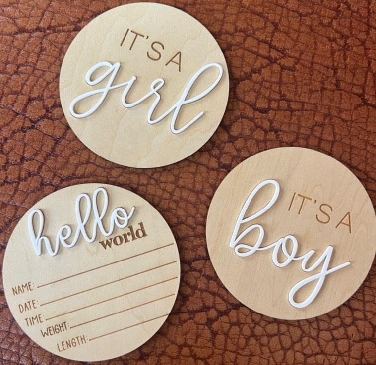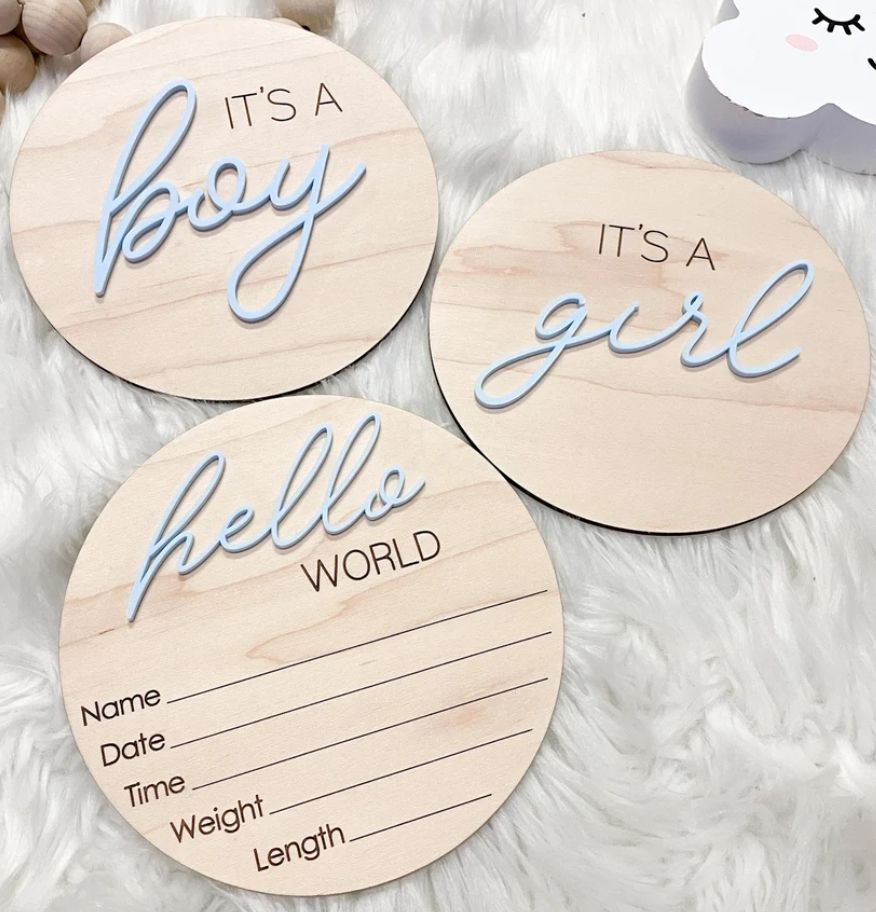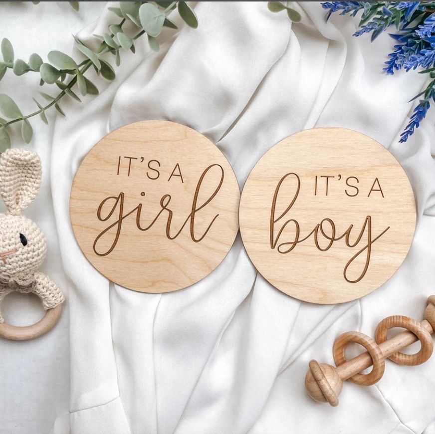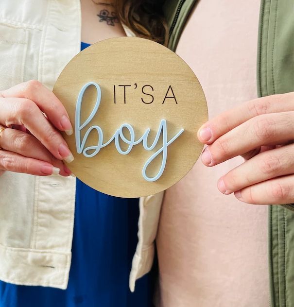 Segno di annuncio di rivelazione di genere A sorpresa, è una ragazza che è un oggetto di scena per foto di genere maschile, rivelazione di genere per ragazzo o ragazza