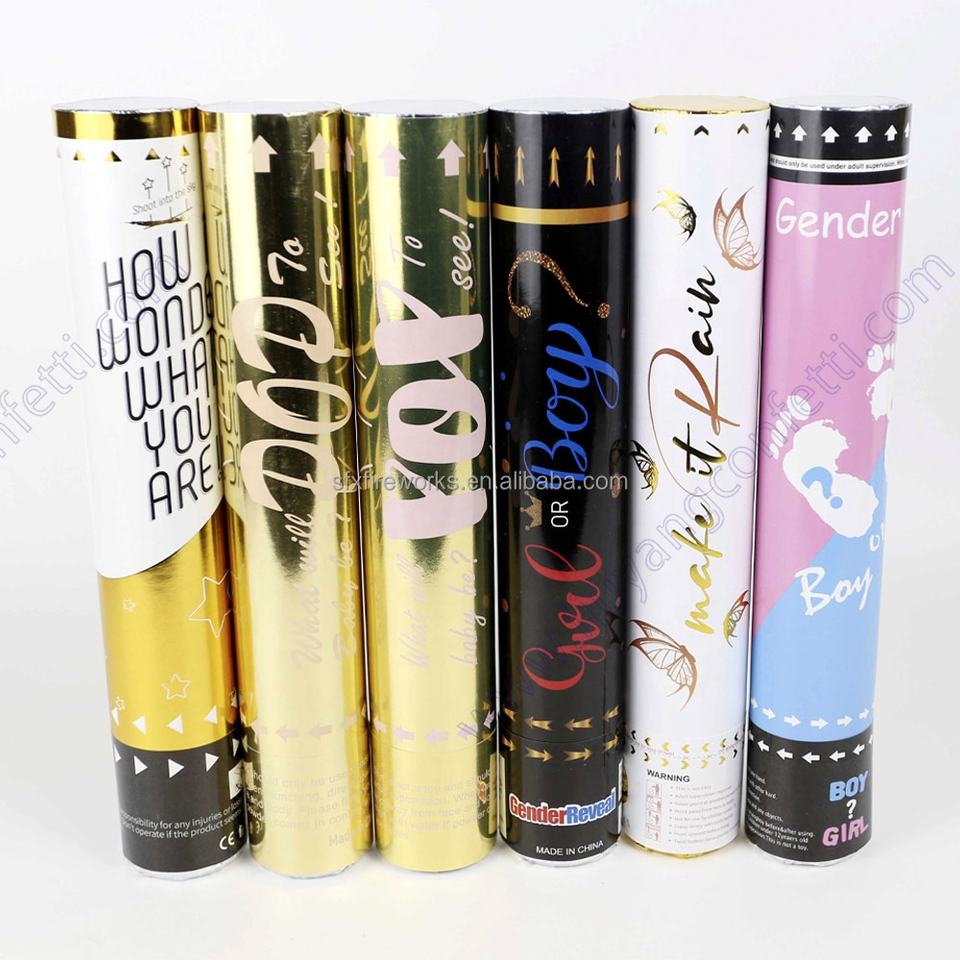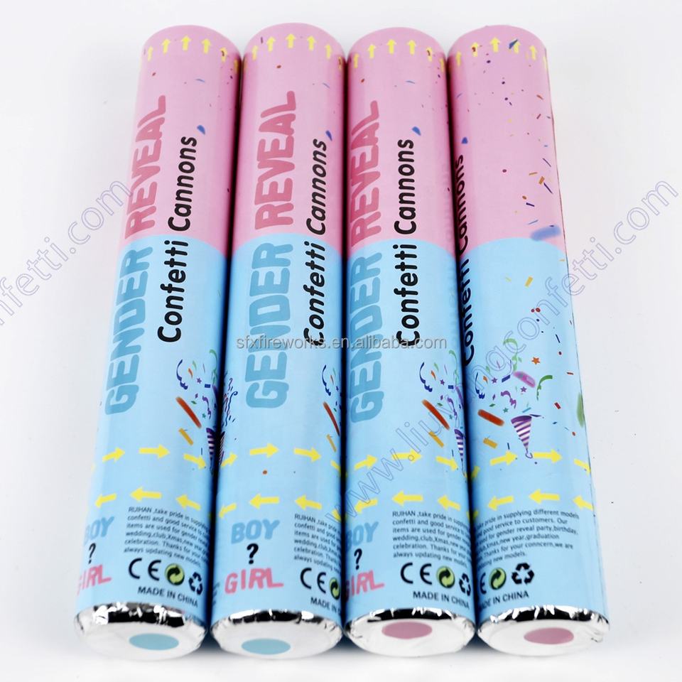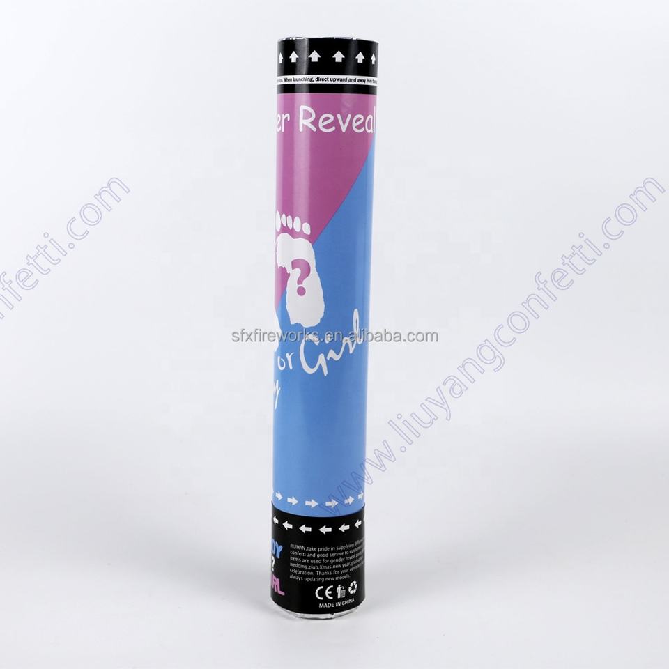 Forniture per feste a sorpresa Color genere rivelano coriandoli di carta cannoncino rosa blu tubo polvere biodegradabile