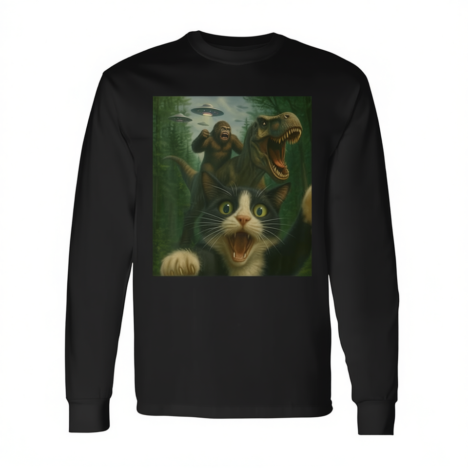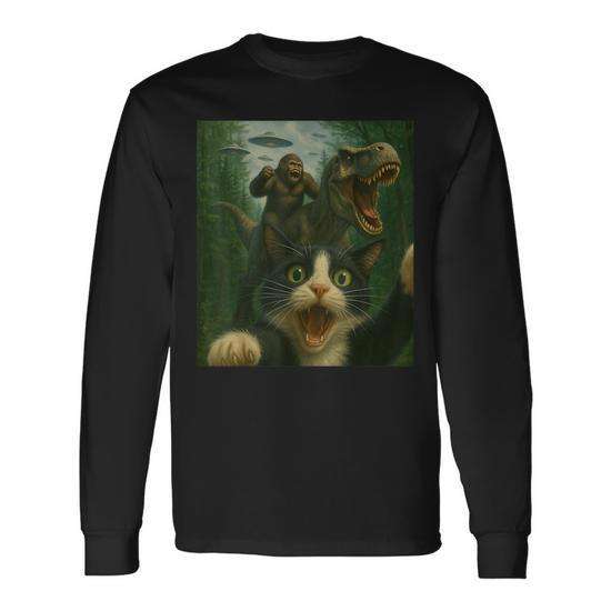 Maglietta a maniche lunghe Surprised Cat T-Rex Bigfoot Ufo