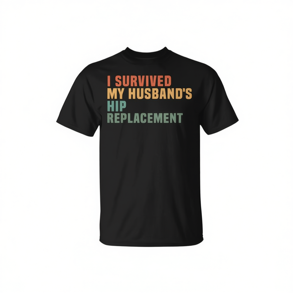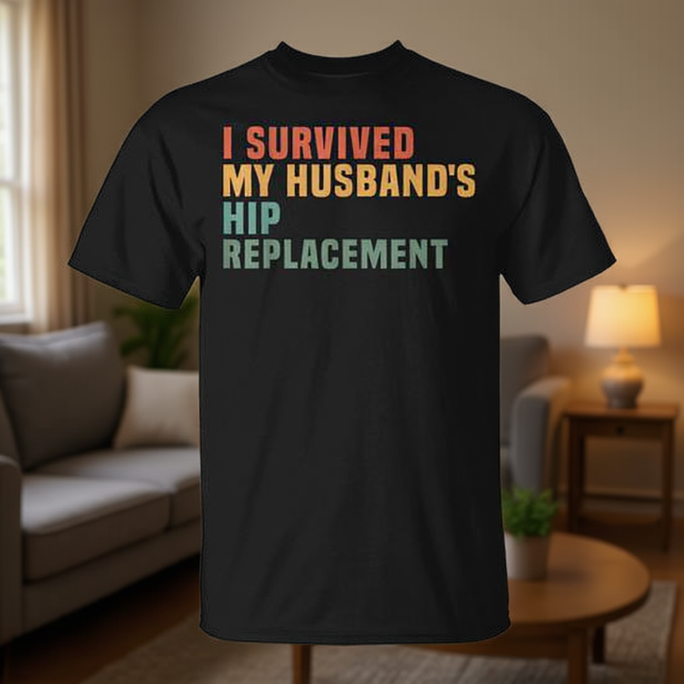 Sopravvi all'intervento chirurgico alla protesi dell'anca del marito? Mostra la tua forza con la nostra maglietta di supporto!