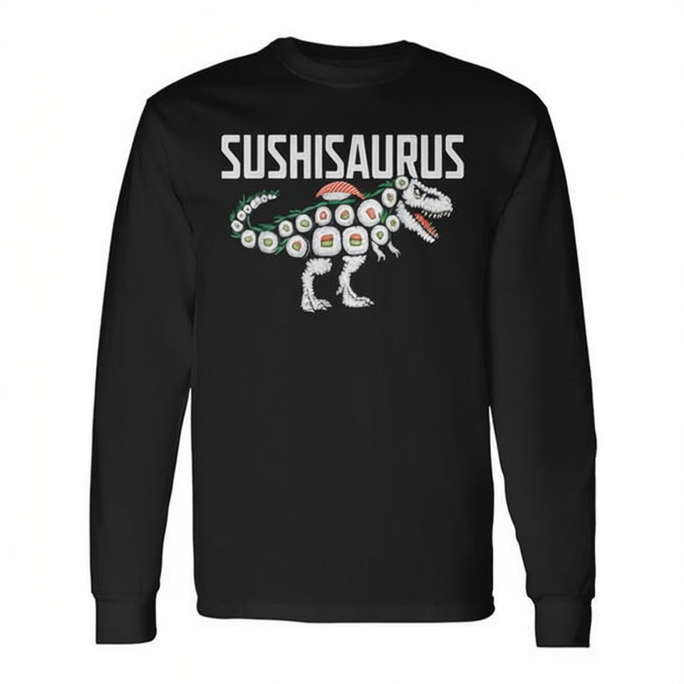T-shirt a maniche lunghe Sushisaurus Dinosaur Sushi Roll con design a tema cibo giapponese