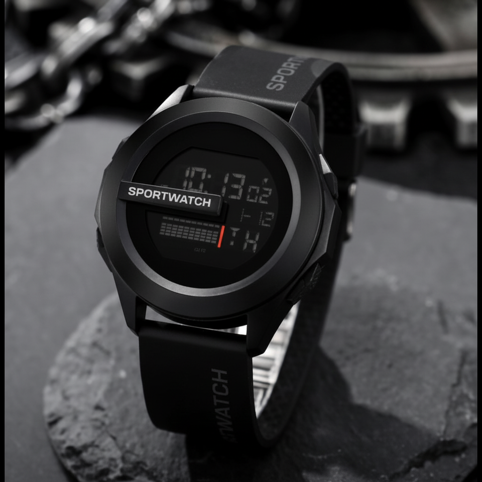 Suzuki Sports Watch Waterproof Electronic Wristwatch with Stopwatch Black Color