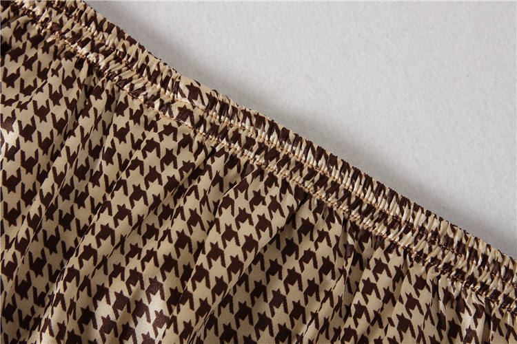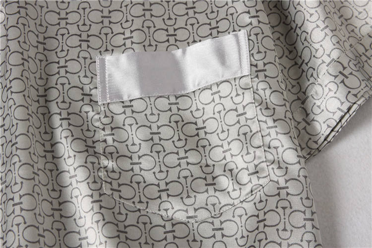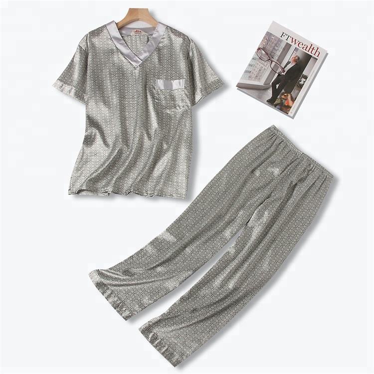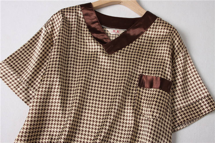 Swallow Gird Pajama for Men Short Sleeve Long Pants Printed Men's Satin Sleepwear Nighties 2 Pc Printing Grid Night Shirt Shorts