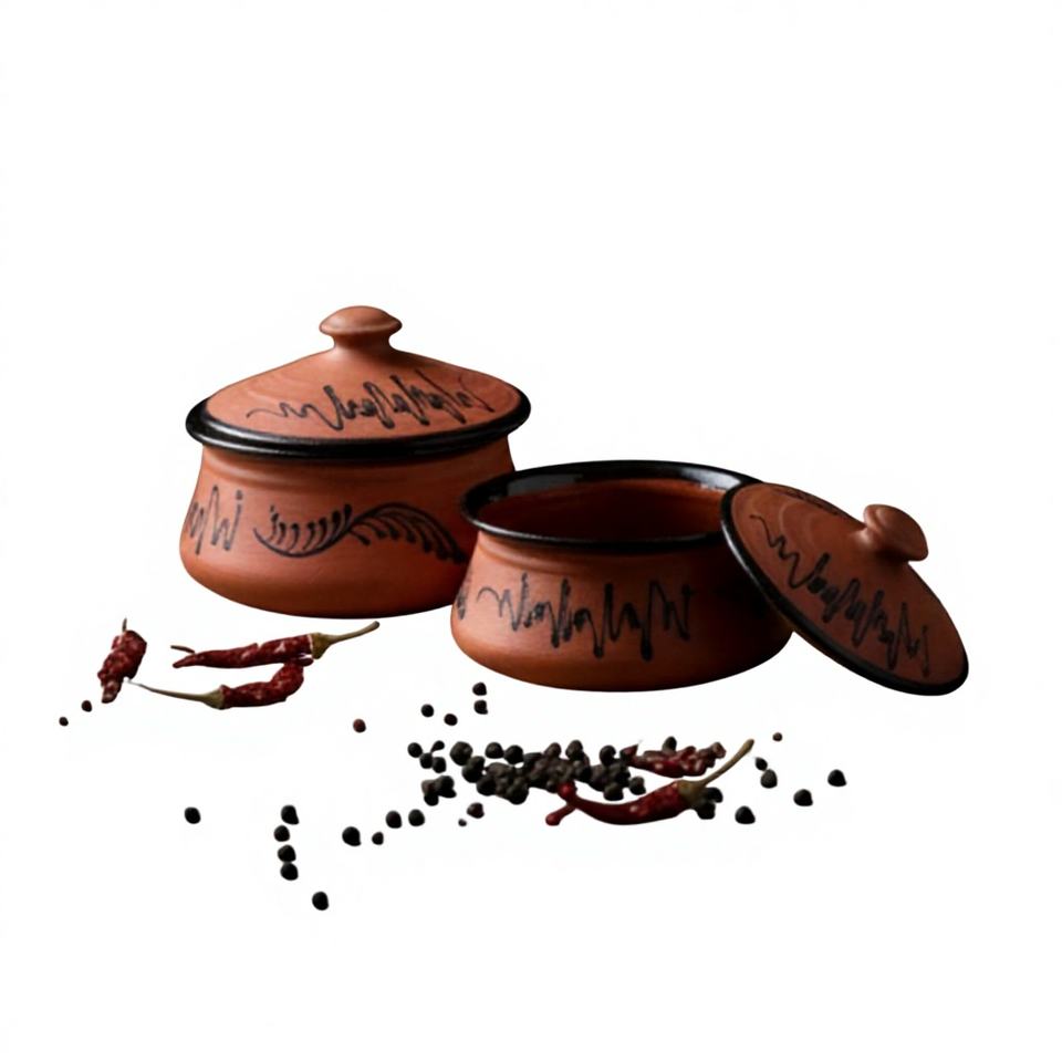 SwamiG TradeX Pentole in Terracotta Dipinte a Mano, Resistenti al Calore, Antiaderenti, Ecologiche, Facili da Pulire, con Coperchi, Compatibili con Fornelli Senza Fiamma
