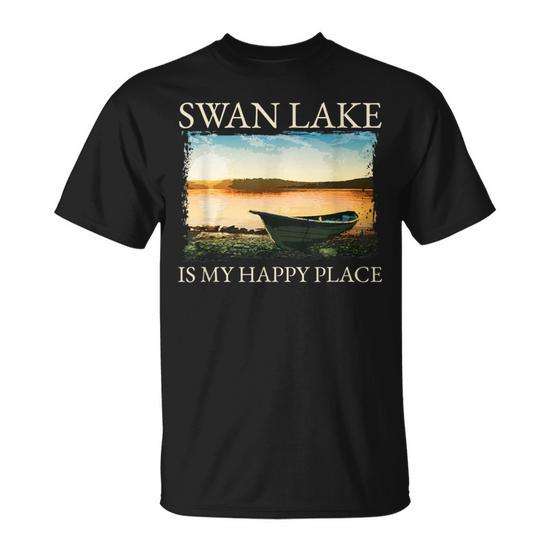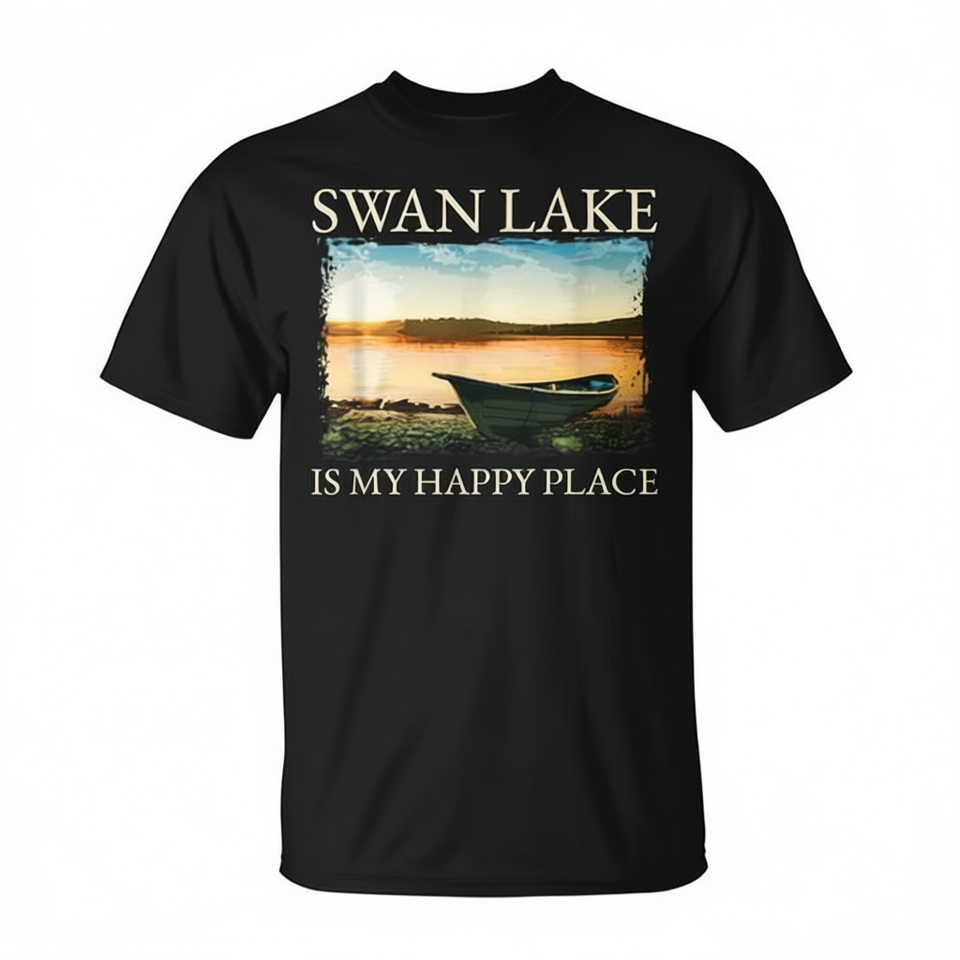 Swan Lake T-Shirt Short Sleeve Unisex Crew Neck Digital Printing Adult Lake Life Kayaking Happy Place