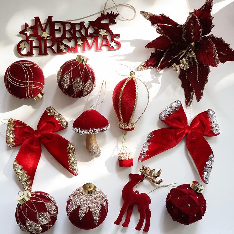 Fiocco in Tessuto Floccato Rosso Vino con Paillettes SwanLace, Decorazione Pendente per Albero di Natale, Fungo, Mongolfiera, Renna