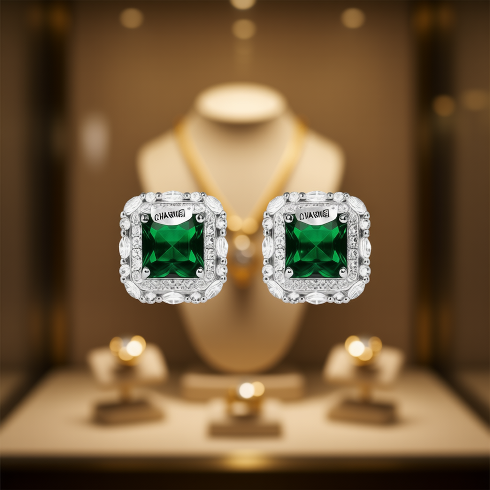 Swarovski Green Gemstone Stud Earrings 925 Silver Princess Cut Classic Geometric Everyday Wear