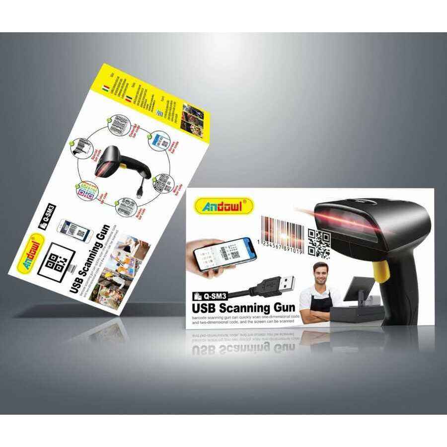 Scanner di codici a barre CCD nero USB Andowl per la vendita al dettaglio e la gestione dell'inventario