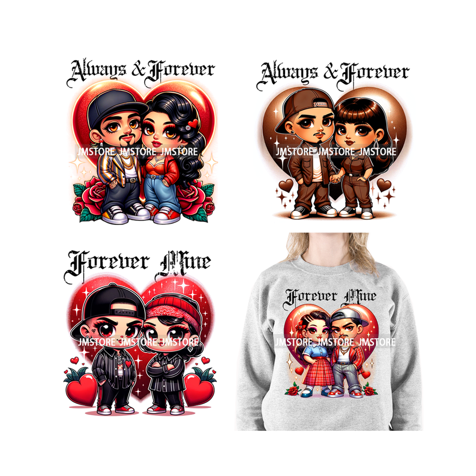 Dolce sempre sempre Chicano san valentino Chola coppia messicana Latina amore ferro su DTF adesivi di trasferimento pronti a premere per i vestiti