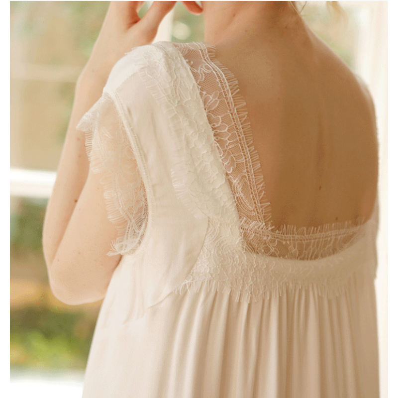 Sweet New Court-Style 100% Viscose Satin White Dress Simple and Fresh Long Women Night Dress