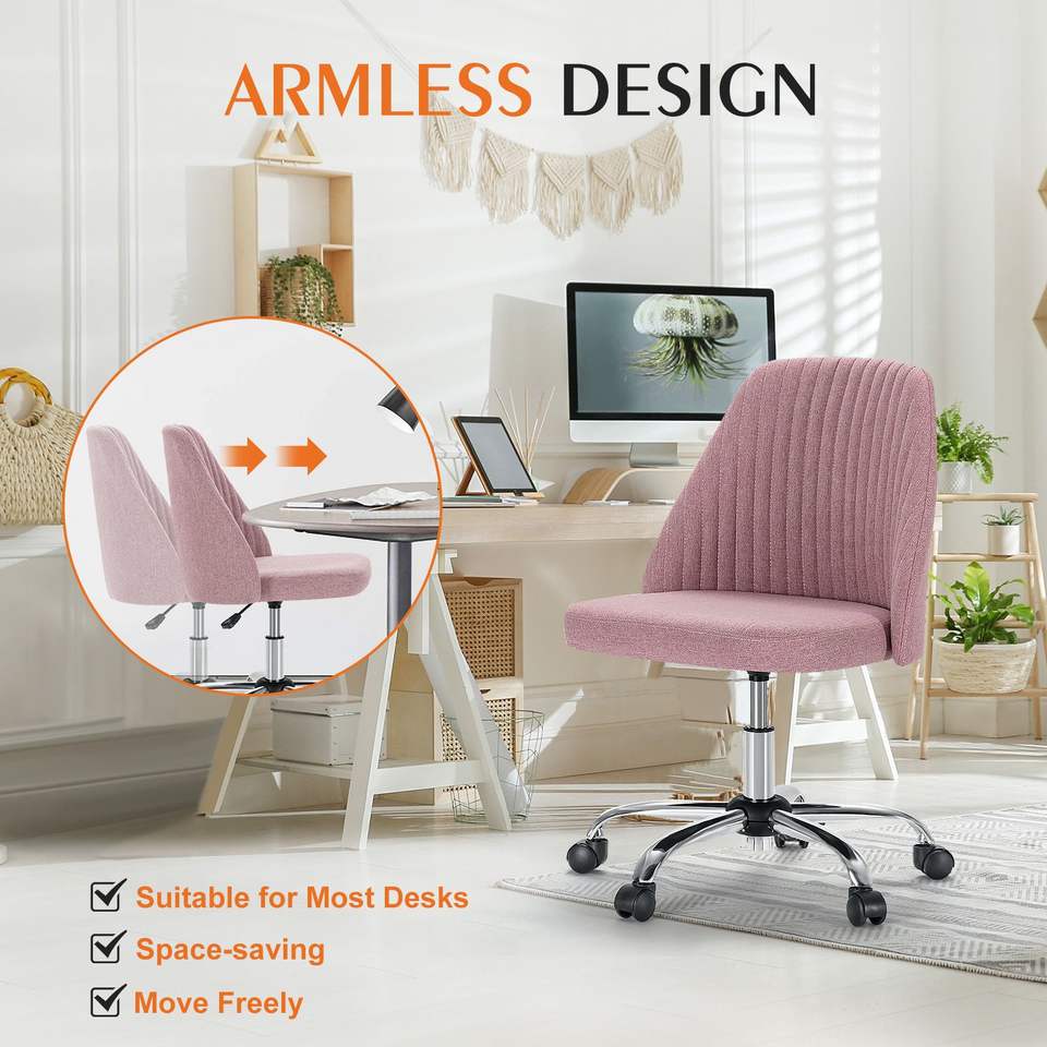 Sweetcrispy Armless Home Office Desk Chair Adjustable Swivel Task Computer Vanity Chair with Wheels for Small Spaces