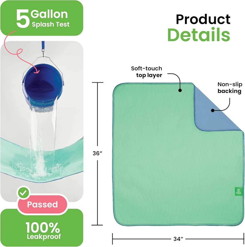 Tappetino Assorbente Impermeabile Lavabile e Riutilizzabile per Letto, Tappetino per Incontinenza e Addestramento Cuccioli a 4 Strati IMPROVE Diaper