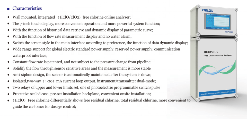 Nuoto piscina uso POP-8300 analizzatore di cloro libero on-line uso ospedaliero attrezzature di test di qualità Dell'acqua ione Cloruro di prova