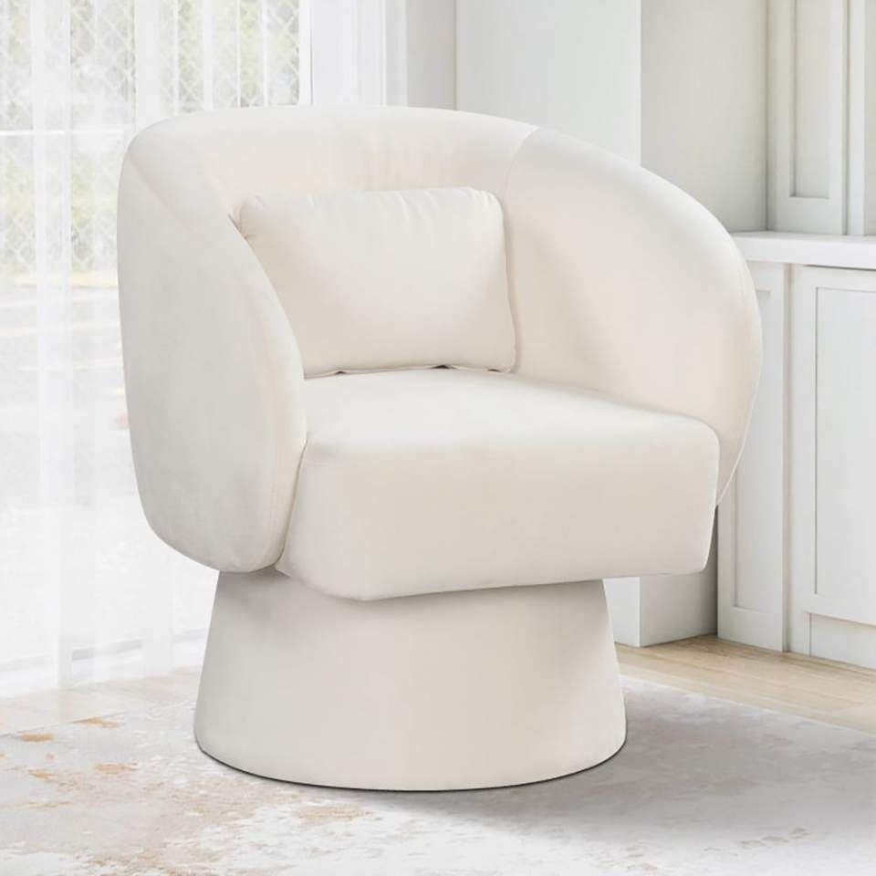 Poltrona Girevole Imbottita per Soggiorno con Schienale Curvo e Cuscino Lombare Rimovibile