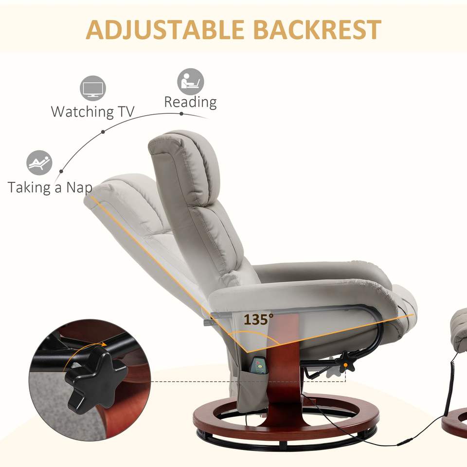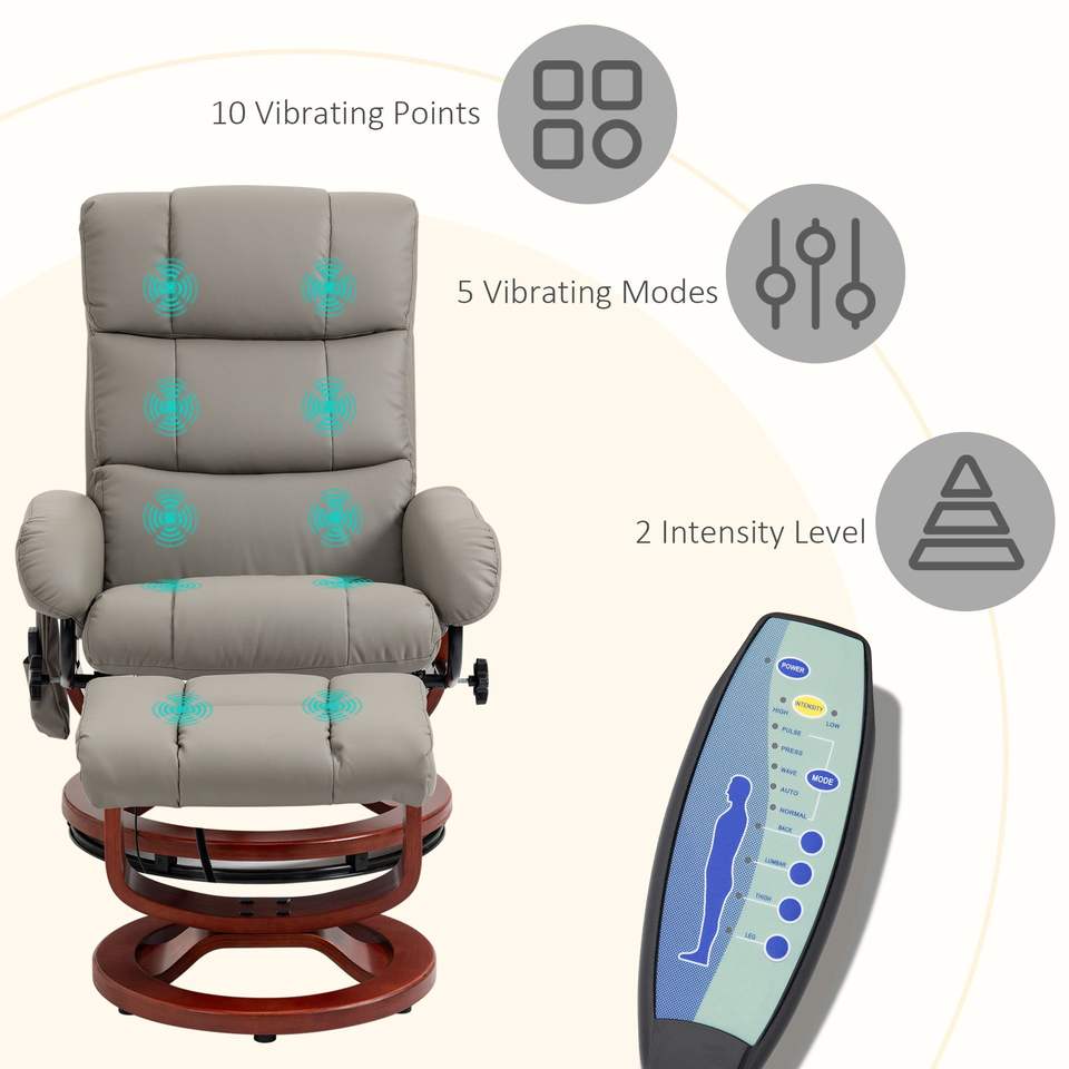 Poltrona Reclinabile Girevole con Poggiapiedi, 10 Modalità di Massaggio Vibrante, in Ecopelle, con Telecomando, Comfort Premium e Relax