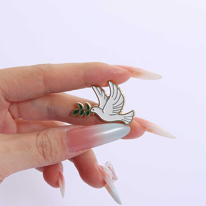 Symbolizing World Peace Pigeon Enamel Pin Peace Dove Olive Branch Metal Brooch Lapel Badge Jewelry Decoration Gift for Friends