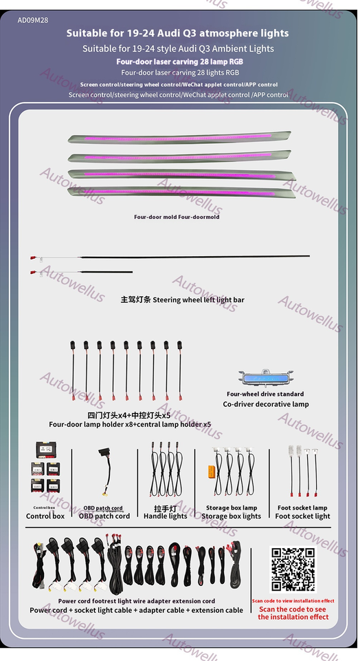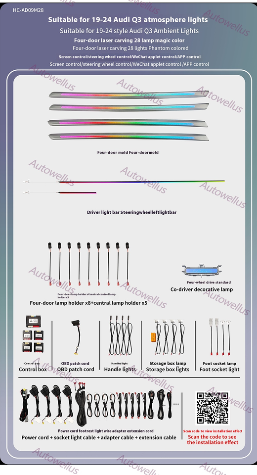 Pannello Luminoso Ambientale LED Symphony per Cruscotto Audi Q3 2019-2024, Accessorio Interno Elegante, Luce Decorativa Sostitutiva