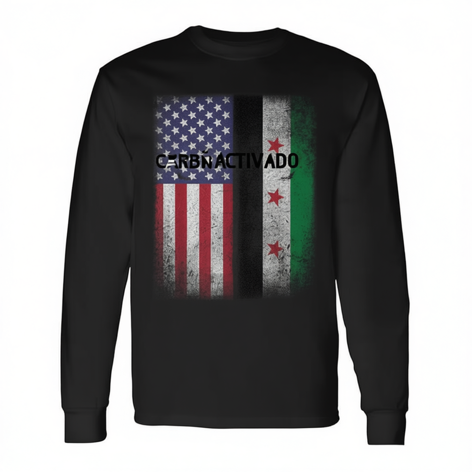 T-Shirt Unisex a Maniche Lunghe con Bandiera Siriana Americana, Design Stampato Digitalmente, Orgoglio USA-S Siria, Uso Promozionale