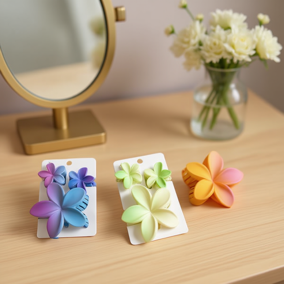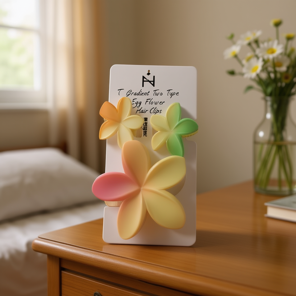 Fermagli per capelli T Mat Gradient bicolore a forma di fiore d'uovo, 10 cm, da donna, alla moda, in plastica, confezione in cartone.