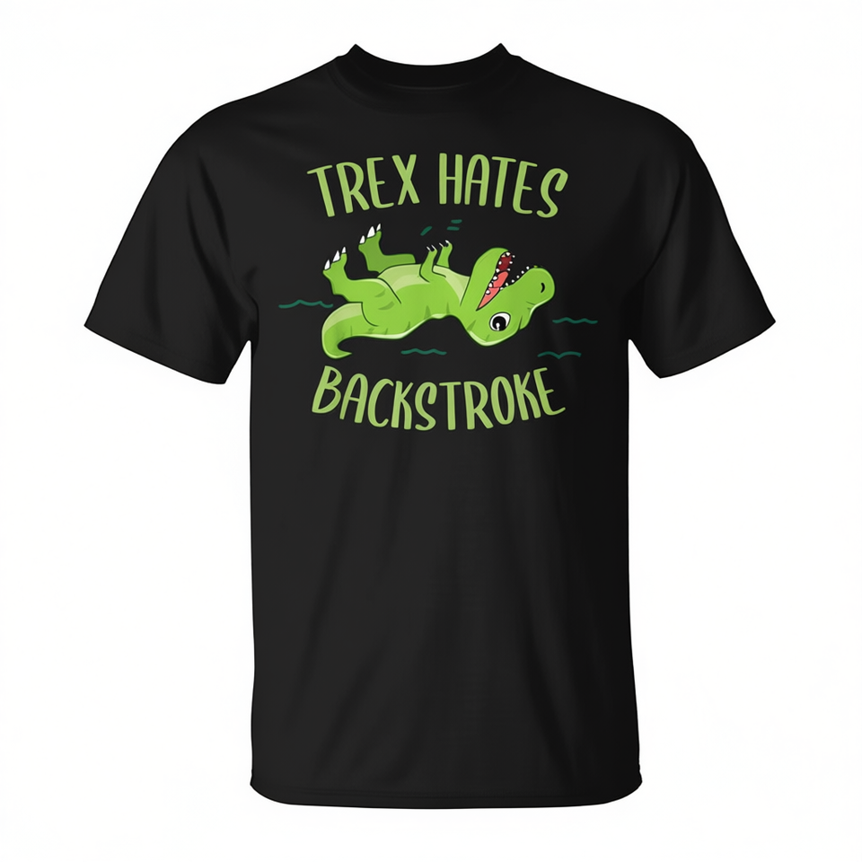 T-shirt divertente 'T-Rex Hates Backstroke' per nuotatori, regalo promozionale per il nuoto