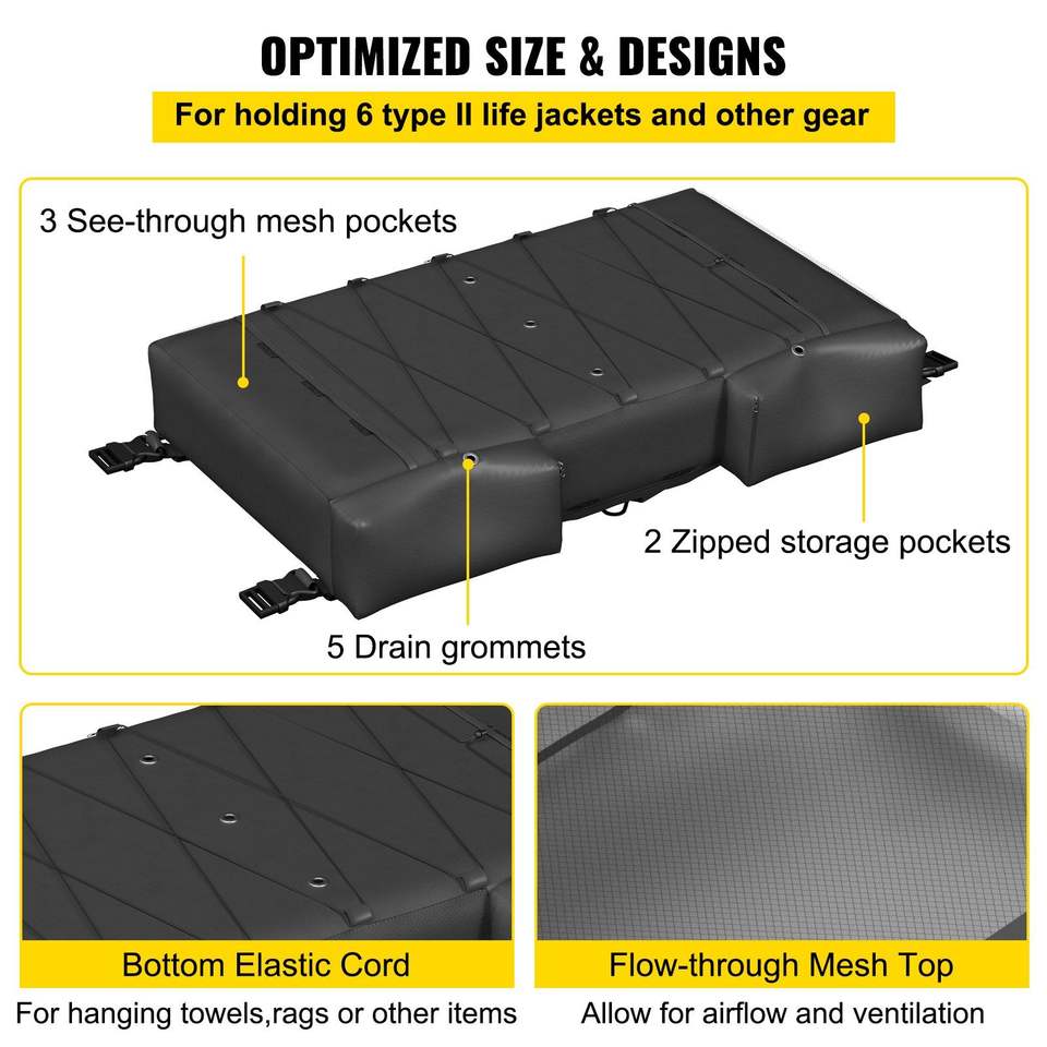 Borsa portaoggetti T-Top per 6 giubbotti di salvataggio di tipo II e contenitore per rifiuti da barca in tessuto Oxford 600D, la più compatibile con T-Top