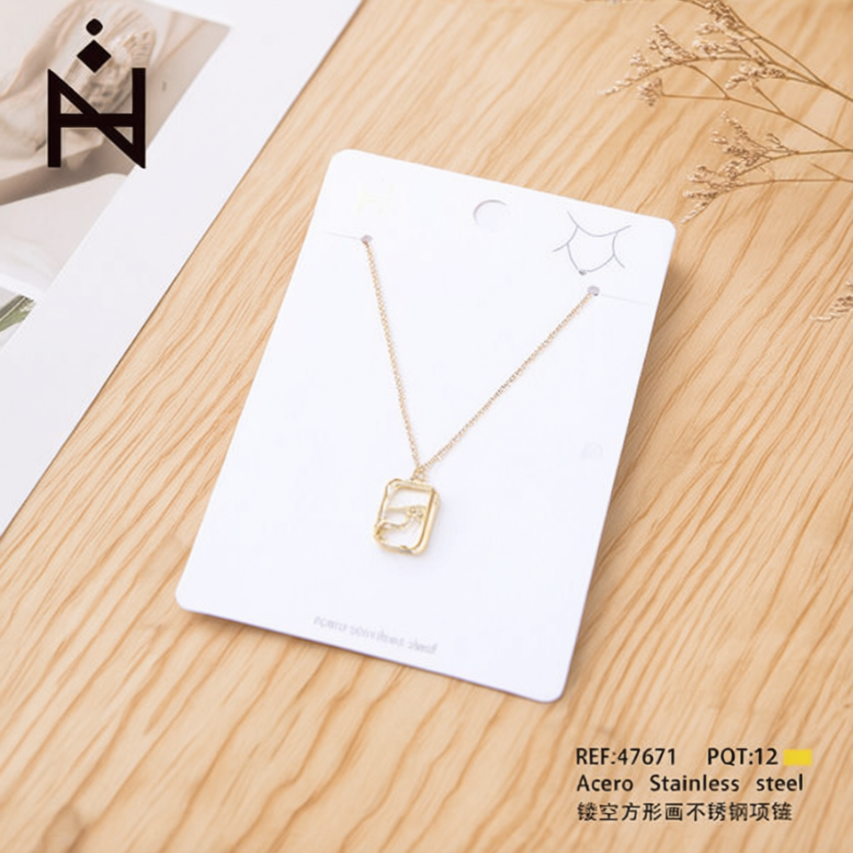 Collana con Ciondolo Quadrato Cavo in Acciaio Inossidabile Placcato Oro per Donna, Gioiello alla Moda, Regalo Trendy Geometrico