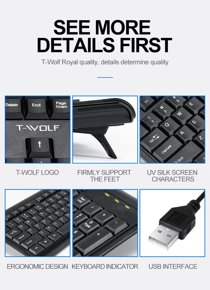 Facoty vendita diretta T-wolf TF500 Business Office tastiera Mouse Kit cablato tasti 104 sottile tastiera Mouse Combo per lavoro d'ufficio