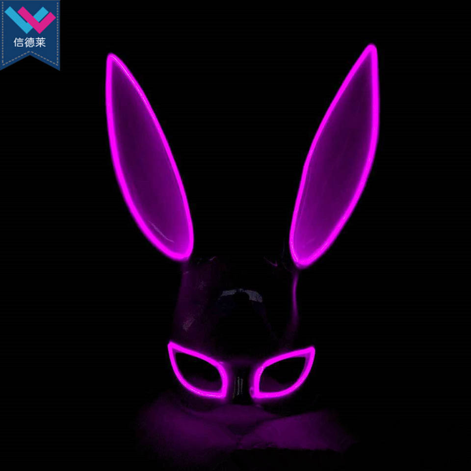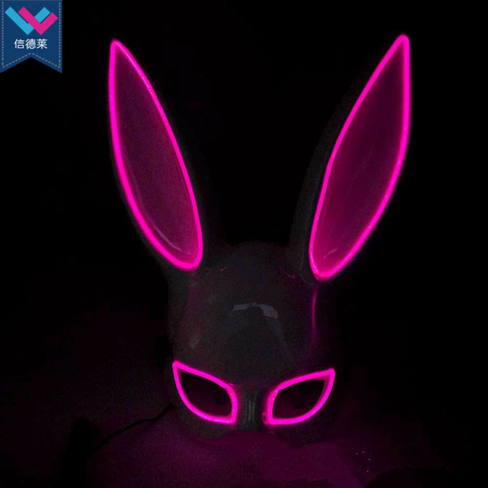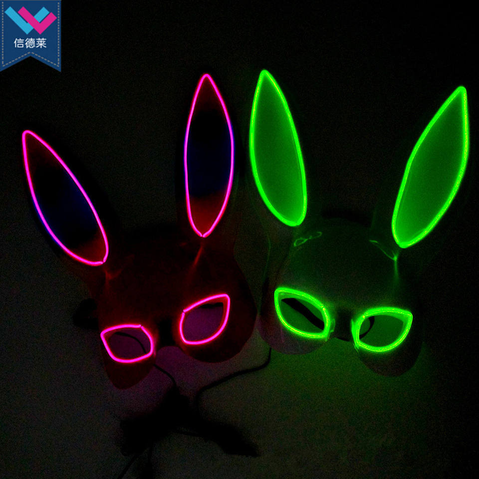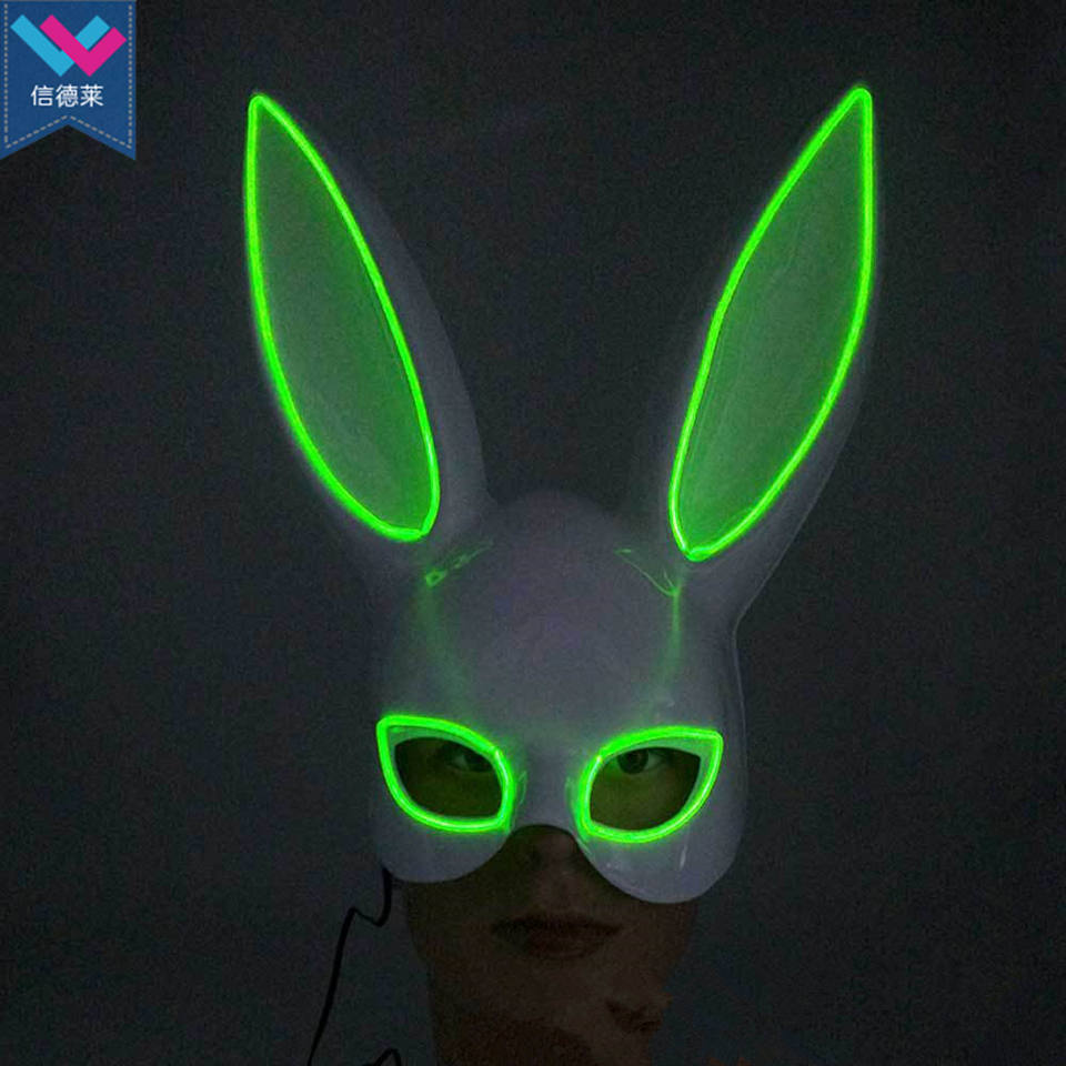 Maschera da Coniglio Femminile T-Worthy Carnival in PVC con Filo EL e Luci LED per Feste di Halloween e Mascherate in Discoteca