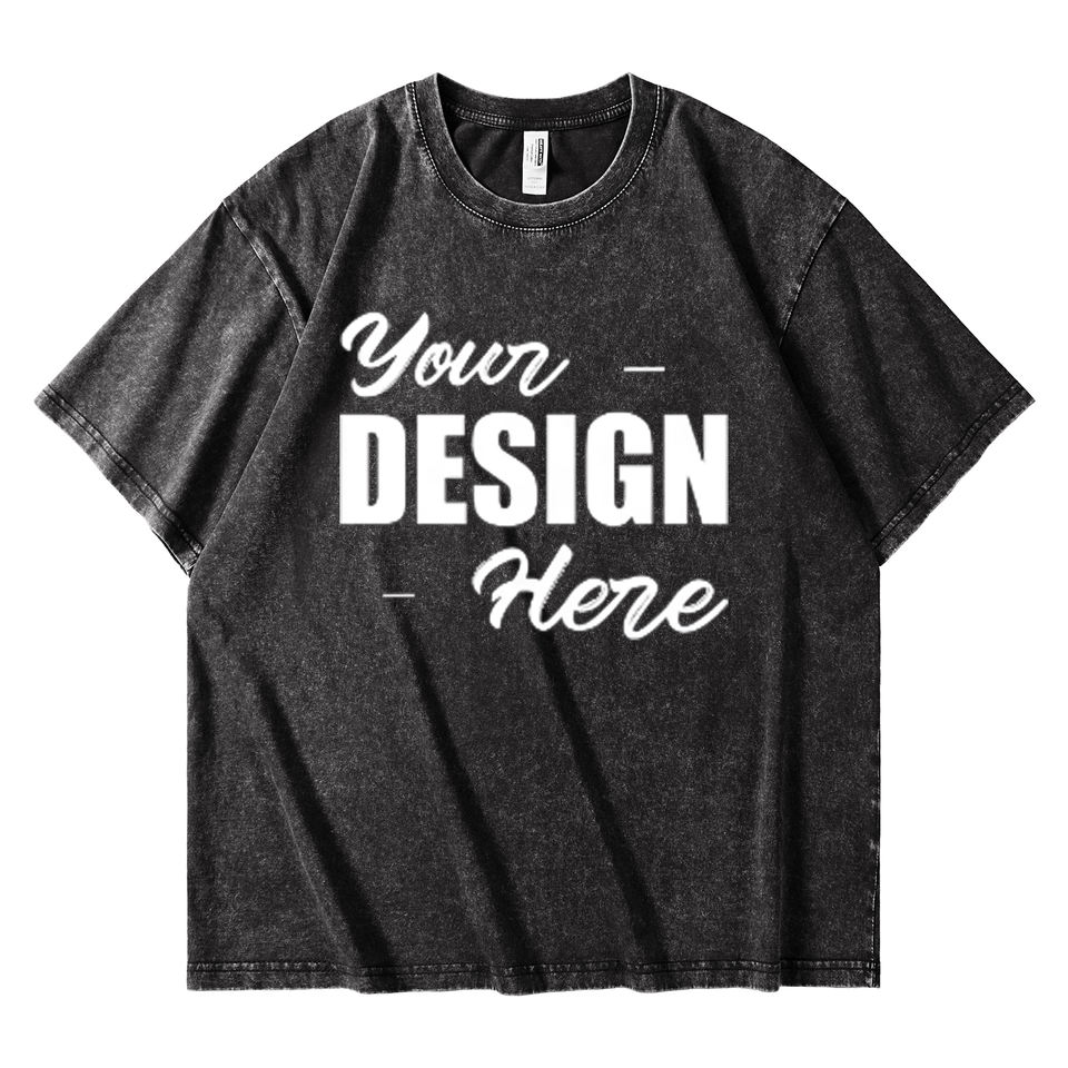 T-shirt Personalizzata 230GSM in Cotone Lavato all'Acido Oversize con Stampa Serigrafica e Ricamo Design Streetwear HipHop 100% Cotone