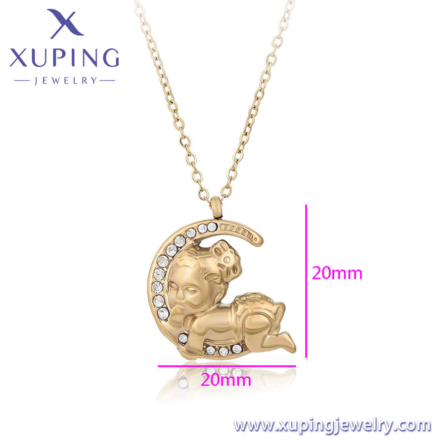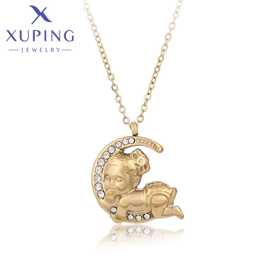 T000643006 xuping Jewelry Fashion Memorable Mother's Day Gift Baby the Moon Stone Stainless Steel 14K Gold Color Chain Necklace